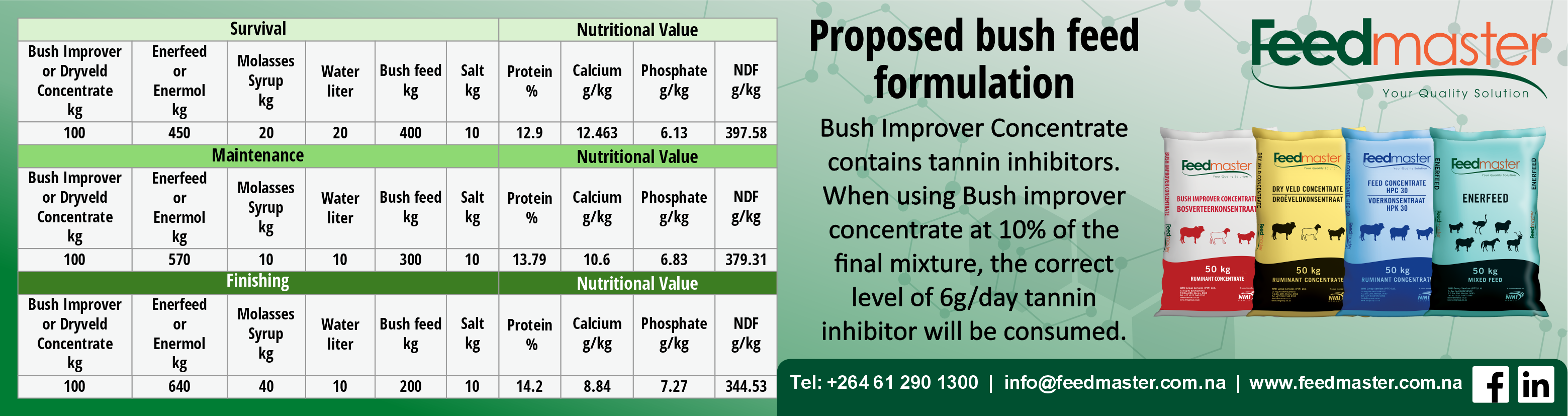 During droughts, the scarcity of roughage for animals becomes a common challenge. In Namibia, the focus shifts towards alternative natural feed sources, with Bush Feed emerging as a prominent solution. Roughage, encompassing grass, dwarf shrubs, shrub leaves, and pods, constitutes a crucial component of the diet for ruminant livestock like cattle, sheep, goats, and various game species, supporting their survival and productivity.